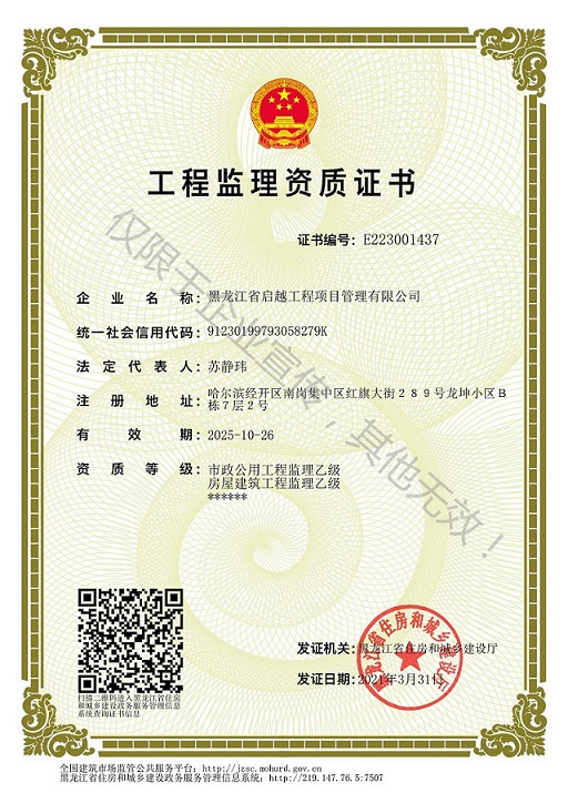 黑龍江省啟越項目咨詢集團(tuán)有限公司,成立于2006年10月17日,具有中華人民共和國住房和城鄉(xiāng)建設(shè)部頒發(fā)的工程招標(biāo)代理機構(gòu)甲級資質(zhì)、工程造價咨詢企業(yè)甲級資質(zhì);黑龍江省住房和城鄉(xiāng)建設(shè)廳頒發(fā)的房屋建筑工程監(jiān)理資質(zhì)及市政公用工程監(jiān)理資質(zhì);黑龍江省司法廳頒布的司法鑒定許可證;中國政府采購網(wǎng)登記注冊的政府采購代理機構(gòu)。我公司是專業(yè)從事工程類招標(biāo)代理服務(wù)、政府采購項目類招標(biāo)代理服務(wù)、工程造價咨詢服務(wù)、工程造價司法鑒定服務(wù)、工程監(jiān)理服務(wù)及建設(shè)項目全過程跟蹤管理的工程技術(shù)服務(wù)咨詢企業(yè)。